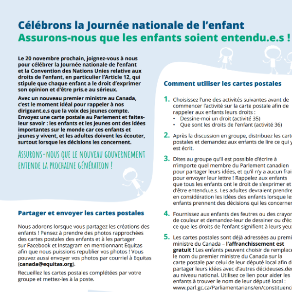 Equitas et Éducaloi présentent cette activité interactive, soutenue par la Ville de Montréal, visant à renforcer les relations entre les jeunes et les intervenant.e.s. Par un exercice de jumelage collaboratif, elle favorise le dialogue, le leadership chez les jeunes et une meilleure compréhension de leurs besoins pour un accompagnement plus efficace. Aussi disponible en anglais.